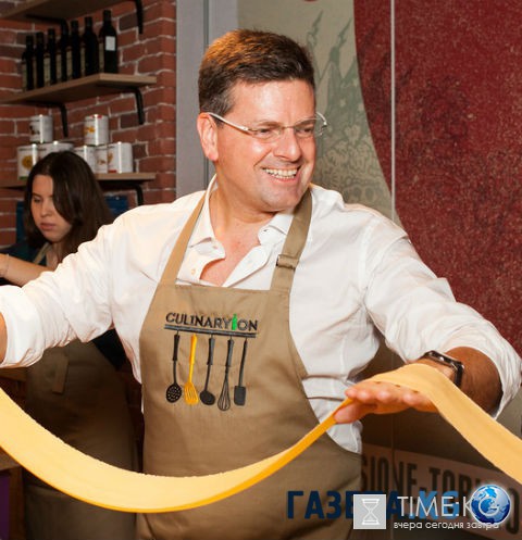 // Фото: Пресс-служба Приготовление спагетти Китарра с белыми грибами и черным трюфелем оказалось самым веселым. Мужчины сразу же взялись за самую сложную часть рецепта - начали месить и превращать кусок теста в колбасу. Девушки же пропускали его несколько раз через специальную машину. В борьбе самого длинного раскатанного теста победителей не было. Почти у каждой команды оно получилось семиметровым.