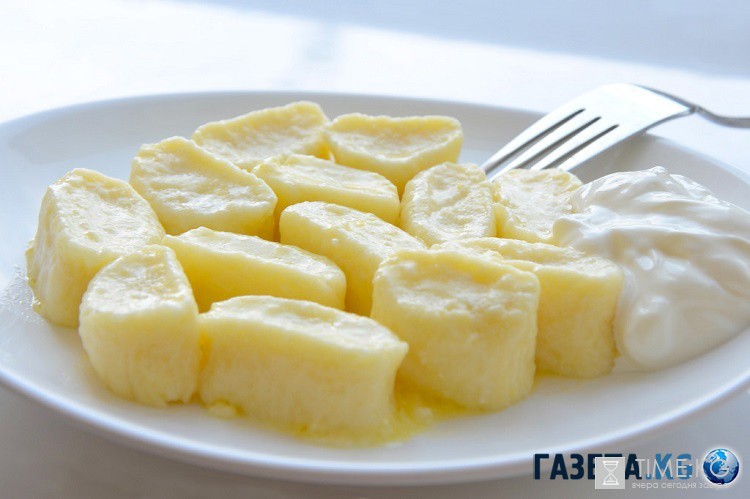 Способ приготовления: возьмите 2 яйца, отделите желтки от белков и добавьте их в творог. Добавьте 50–60 мл ледяного молока, кусочек сливочного масла, 2 ст. л. муки. Все тщательно перемешайте. Выложите тесто на присыпанную мукой поверхность и обваляйте его в муке, слегка вымешивая. Разрежьте тесто на несколько частей и из них скатайте длинные колбаски. Нарежьте полученные колбаски на небольшие кусочки. Опустите полученные вареники в кипящую воду. Варите их, часто помешивая. Когда вареники всплывут на поверхность, они готовы и пора их выкладывать на тарелку. Когда вареники будут выложены на тарелку, смажьте их сливочным маслом. Для приготовления сладкого фруктового соуса для заправки «ленивых» вареников, возьмите консервированные фрукты и протушите их с сахаром в собственном соку, периодически помешивая. Когда соус будет готов, полейте им ваши вареники и подавайте к столу.