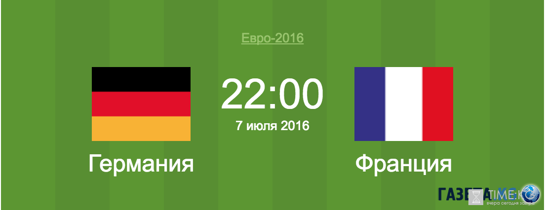 Сегодня в 10 часов вечера по Москве пройдет второй матч полуфинала, где встретятся Германия и Франция. Все желающие могут следить за ходом футбольного поединка по прямой текстовой он-лайн трансляции на сайте «Чемпинат», которая начнется сразу же после старта матча.