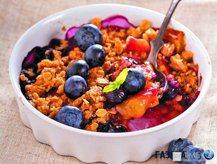 Крамбл с черникой и персиком