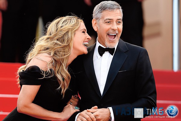 Джордж Клуни водит дружбу с первыми леди Голливуда, но никогда не переходит грань. На фото – с Джулией Робертс на премьере «Финансового монстра». Канны, 2016 год