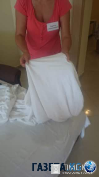 В последний день своего пребывания на отдыхе семья застала в своем номере горничных, которые рылись в их вещах и разглядывали белье, в котором обнаружили тот же песок и следы от абрикоса, который дети нечаянно уронили на кровать. После этого с семьи стали требовать 3,5 тысячи рублей за испорченное белье. После отказа платить, семье перекрыли дорогу ржавыми "Жигулями" и требовали деньги, угрожая полицией.
