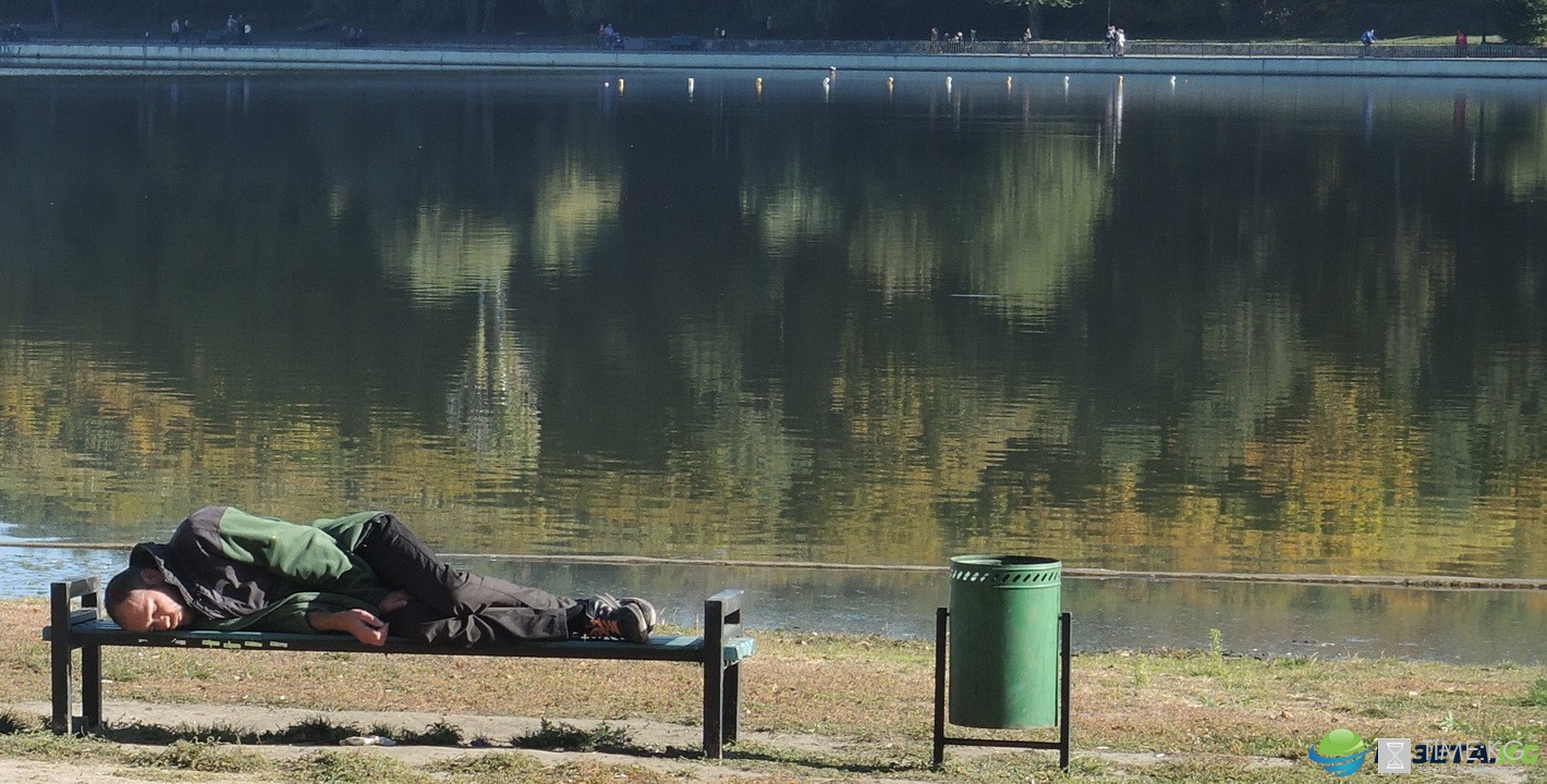 И даже, спящий на зелёной скамеечке дяденька, не рвал глаз, а органично вписался в атмосферу неги и блаженства! А, особенно, цветовой гаммы.))