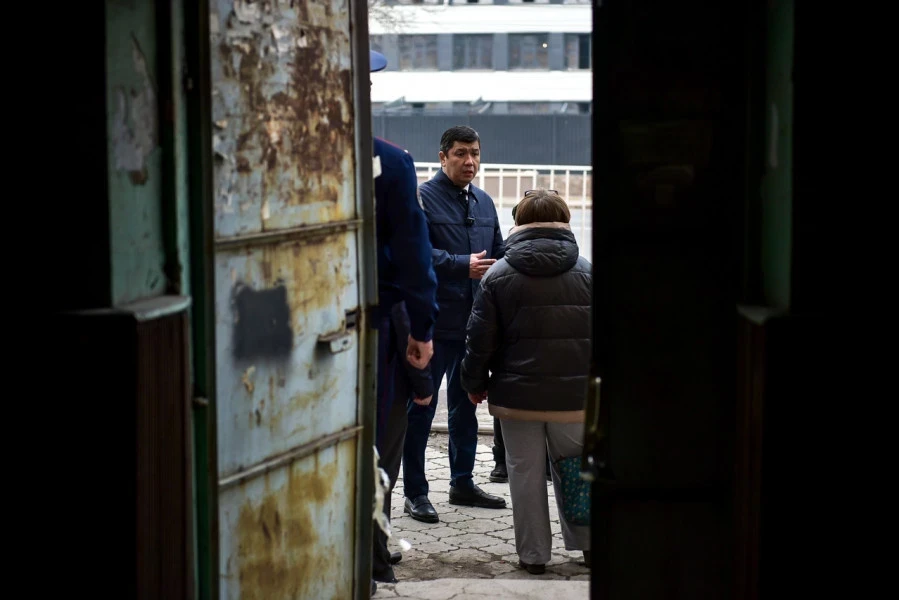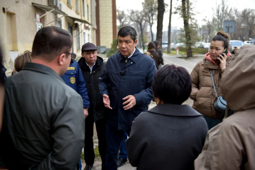 Мэр Бишкека, Айбек Джунушалиев, посетил место происшествия и пообщался с жителями сгоревшего здания.