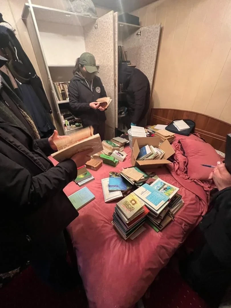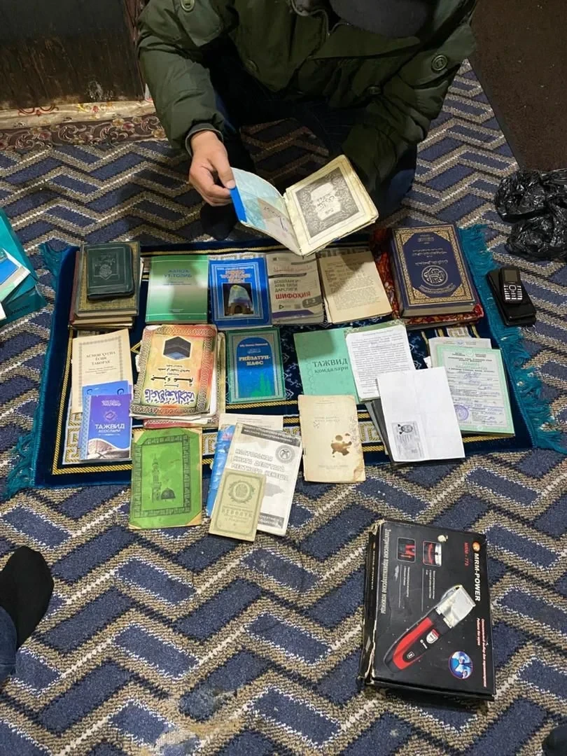 В ходе обысков было изъято 217 предметов, которые могут служить доказательствами, среди которых: 75 книг, 14 мобильных телефонов, 18 тетрадей, 86 DVD-дисков, 4 планшета, 1 ноутбук, 2 SIM-карты, 14 российских паспортов, 1 печать, 1 видеокассета и 1 банковская карта «Бакай Банк».