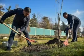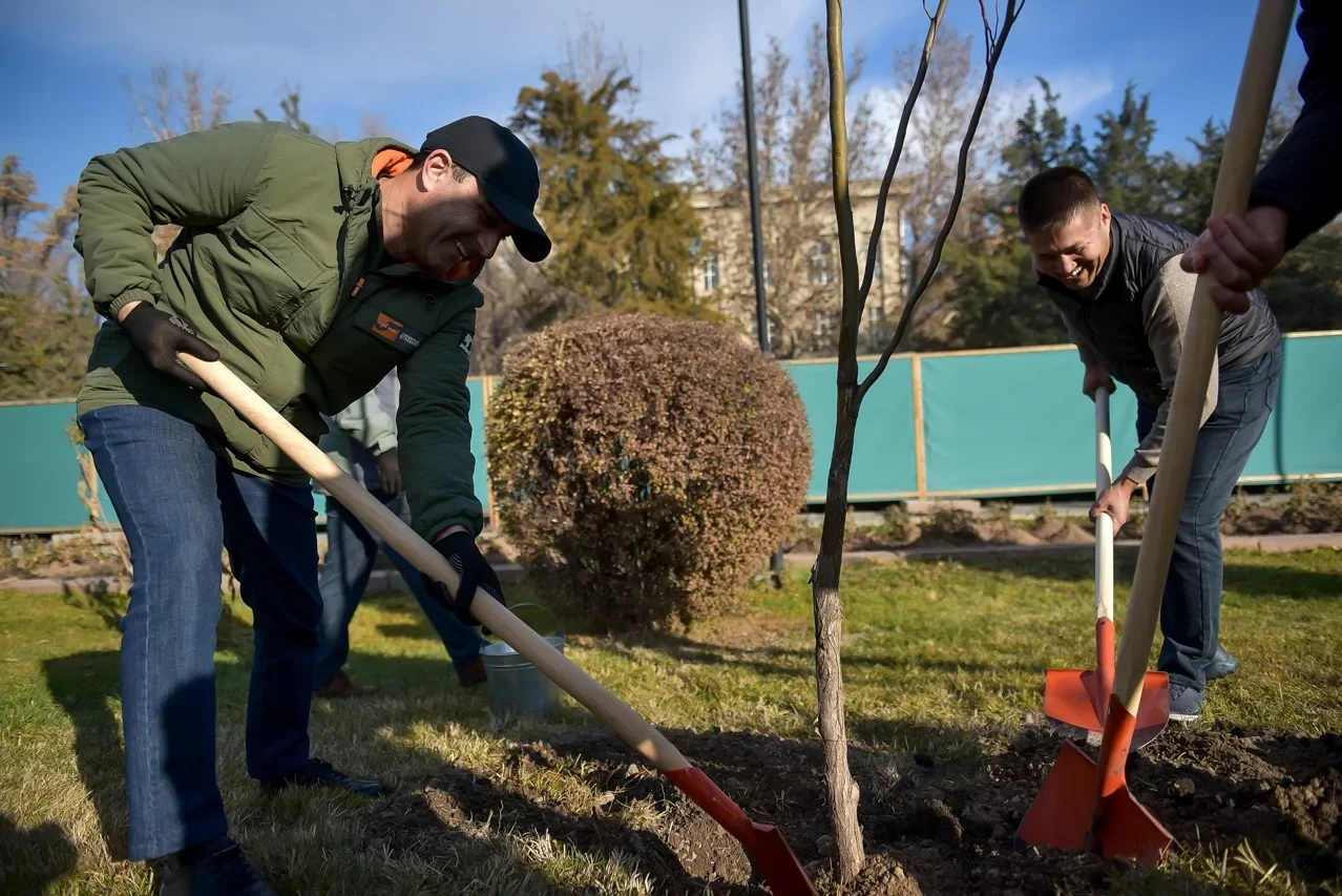 В рамках осенней высадки деревьев, мэр Бишкека Айбек Джунушалиев присоединился к мероприятию по озеленению города. Как сообщает мэрия, на пересечении улиц Тыныстанова и проспекта Чуй были посажены 14 ив. Кроме того, на улице Саманчина, в районе пересечения с улицей Байтик баатыра, также появились саженцы клена.
