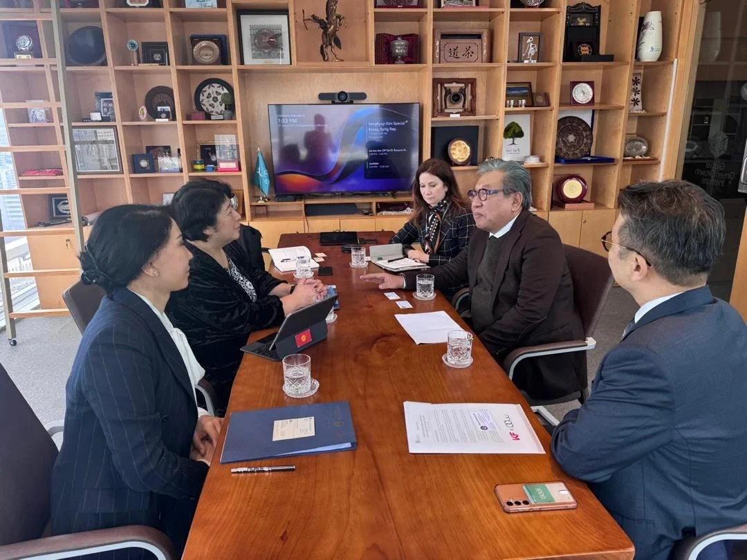 В ходе своего визита она провела продуктивные консультации с Пак Чон Хо, исполнительным директором Азиатской организации лесного сотрудничества (AFOCO), и Ким Санг Хёпом, исполнительным директором Глобального института зелёного роста (GGGI). Также обсуждались возможности сотрудничества с представителями зеленого климатического фонда для реализации проектов, направленных на развитие горных регионов Кыргызстана в рамках Пятилетия действий (2023–2027 годы).