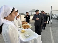 Полномочный представитель президента Кыргызской Республики в Баткенской области, Айбек Шаменов, встретил гостей и провел с ними беседу.