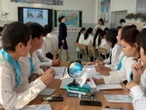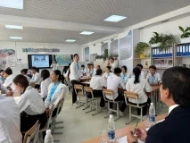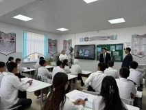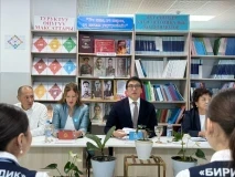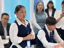 В Бишкеке, в средней школе № 100 имени Байдылды Сарногоева, прошел классный час с участием заместителя председателя кабинета министров Эдиля Байсалова и постоянного координатора системы ООН в Кыргызстане Антье Граве.