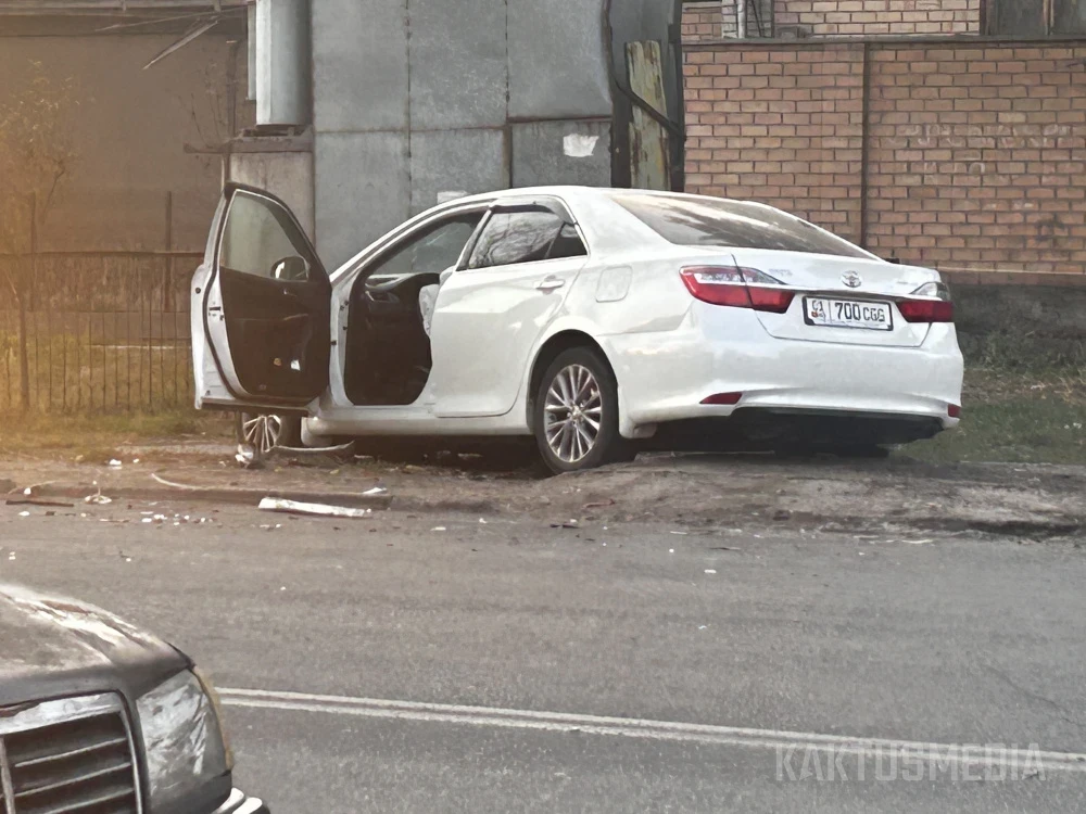 На ул. Салиевой в Бишкеке произошло ДТП. Одна из машин слетела в кювет