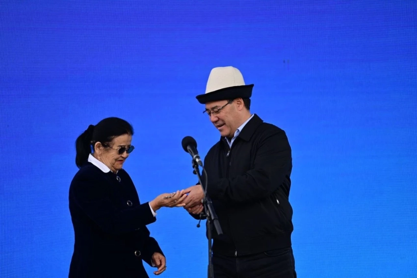 В заключение мероприятия президент вручил ключи от новой квартиры Сейдеке Эргешовой, учителю школы № 1 имени М. Бабкина в городе Манас.