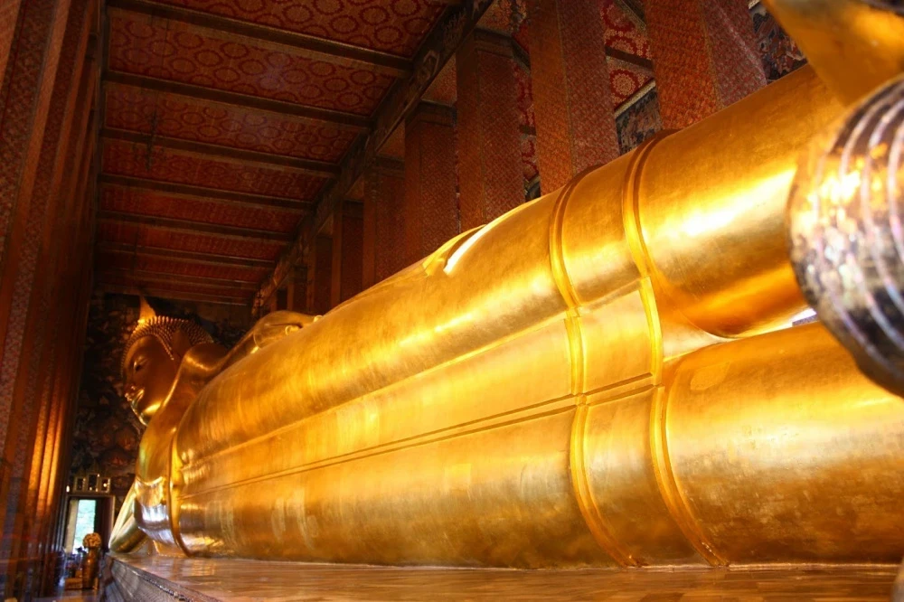 Буквально в нескольких минутах находится Храм Лежащего Будды (Ват Пхо), где вас встретит гигантская 46-метровая позолоченная статуя, ожидающая нирваны.
