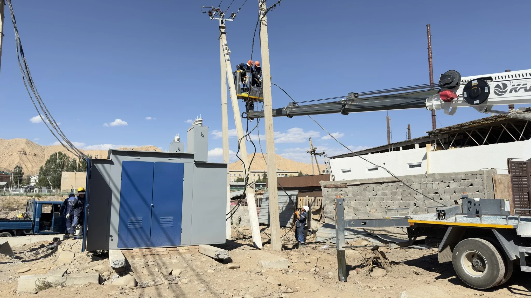 * в процессе строительства находятся ремонтный цех трансформаторов и железобетонный цех в Кочкорском районе, служебно-бытовое помещение в селе Чолок-Кайын Ак-Талинского района, а также подстанции 35/10 кВ «Талды-Суу» и 110/35 кВ «Кур-Терек».