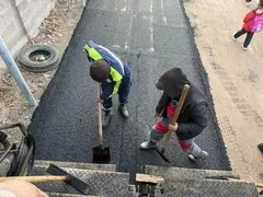 Согласно информации, предоставленной мэрией города, на данном участке ранее была проведена кирковка старого асфальта, установлена ирригационная система и подготовлено основание для дороги.
