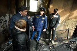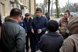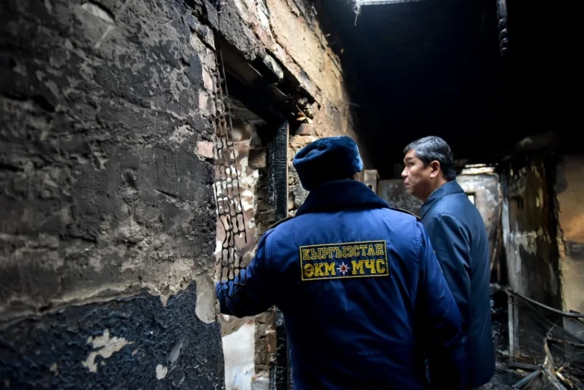 Мэр города Бишкек, Айбек Джунушалиев, посетил место происшествия на проспекте Чынгыза Айтматова, где произошел пожар в сгоревшем доме.