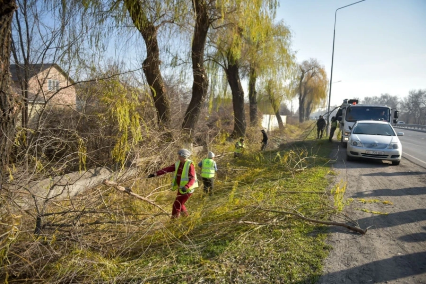 На Васильевском тракте в Бишкеке обрезали деревья. Горожане могут забрать ветки