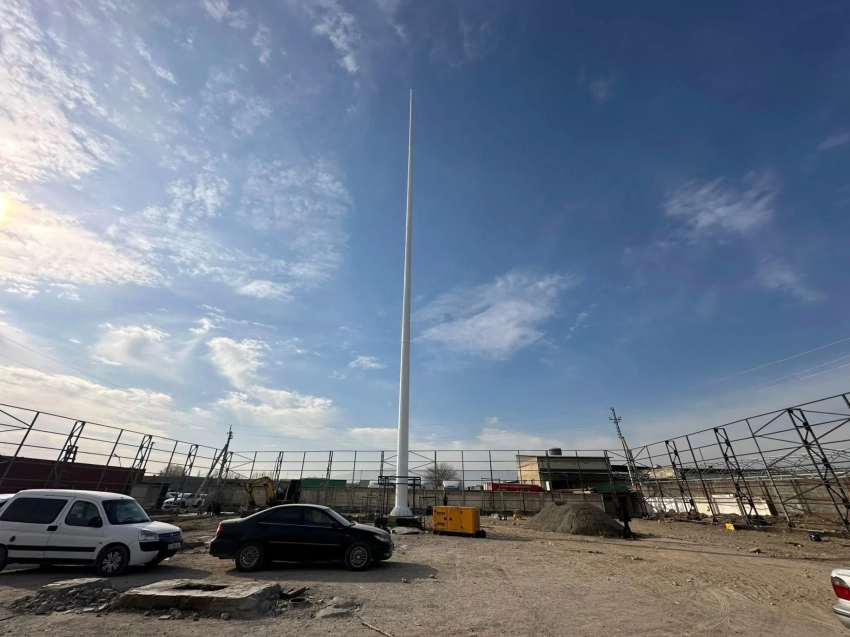 На территории пограничного перехода «Достук» в Оше началась установка флагштока, который будет иметь высоту 45 метров. Информацию об этом предоставили в городской мэрии.