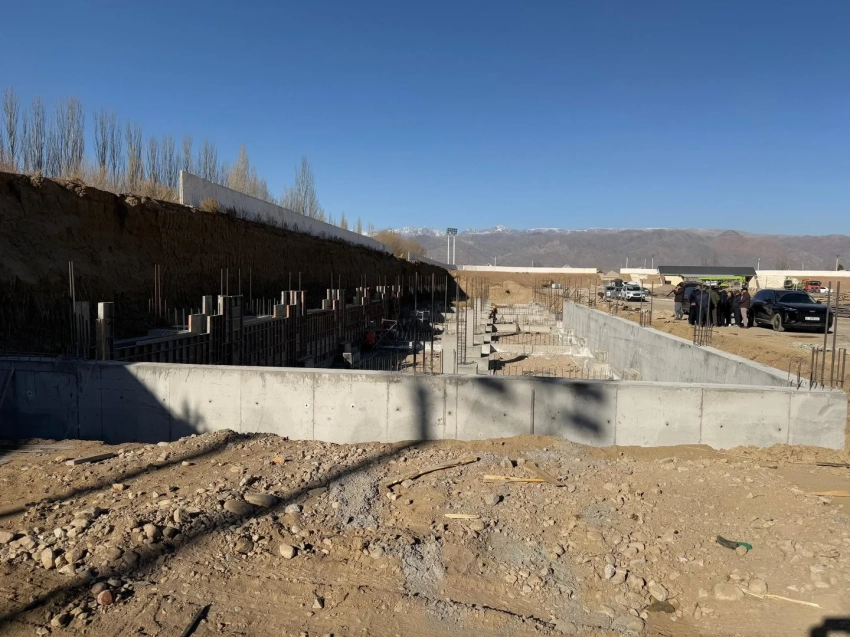 Среди объектов, которые он посетил, оказался и центральный стадион в селе Кочкор, находящийся на стадии активной реконструкции.