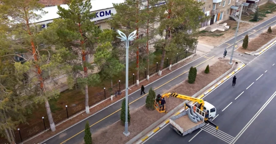 В Таласе стартовал проект по модернизации освещения в городе. На главной площади устанавливаются новые светодиодные осветительные конструкции.