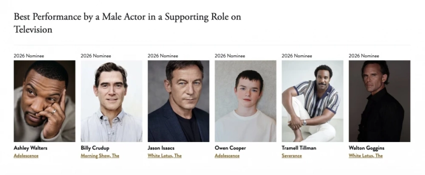 Фильм Пола Томаса Андерсона "Битва за битвой" стал главным претендентом, получив девять номинаций, включая категории "Лучший фильм", "Лучший режиссер" и "Лучший сценарий". Следом идут "Сентиментальная ценность" с восемью, "Грешники" с семью и "Гамнет" с шестью номинациями. "Франкенштейн" и мюзикл "Злая: Навсегда" получили по пять номинаций.В категории сериалов лидирует "Белый лотос" с шестью номинациями, в то время как "Переходный возраст" имеет пять, а "Убийства в одном здании" и "Разделение" — по четыре.