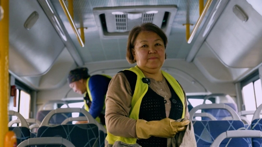 "Ранее я работала лаборанткой и помощницей бухгалтера, а также на других должностях. Когда меня пригласила знакомая на эту работу, я уже была на пенсии. Я согласилась, потому что в моем возрасте важно быть активной, и вскоре мне стало нравиться мыть автобусы", - делится Гульмира.