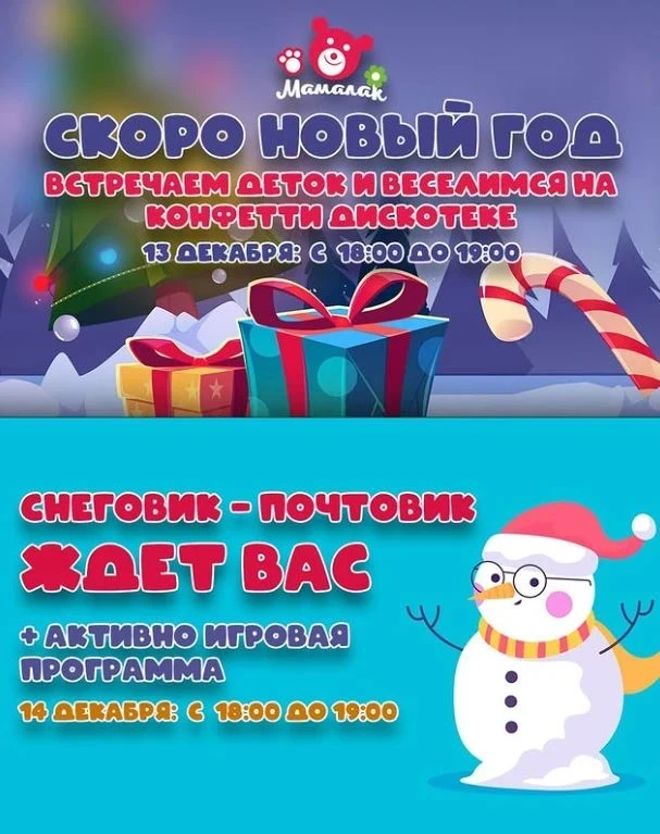 В субботу пройдет конфетти-дискотека, а в воскресенье — выступление Снеговика-почтовика.