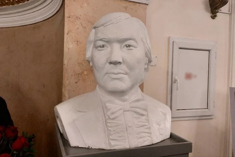 В фойе театра в честь юбилея был открыт бюст Булата Минжилкиева, созданный молодым скульптором Тамилой Маматовой.