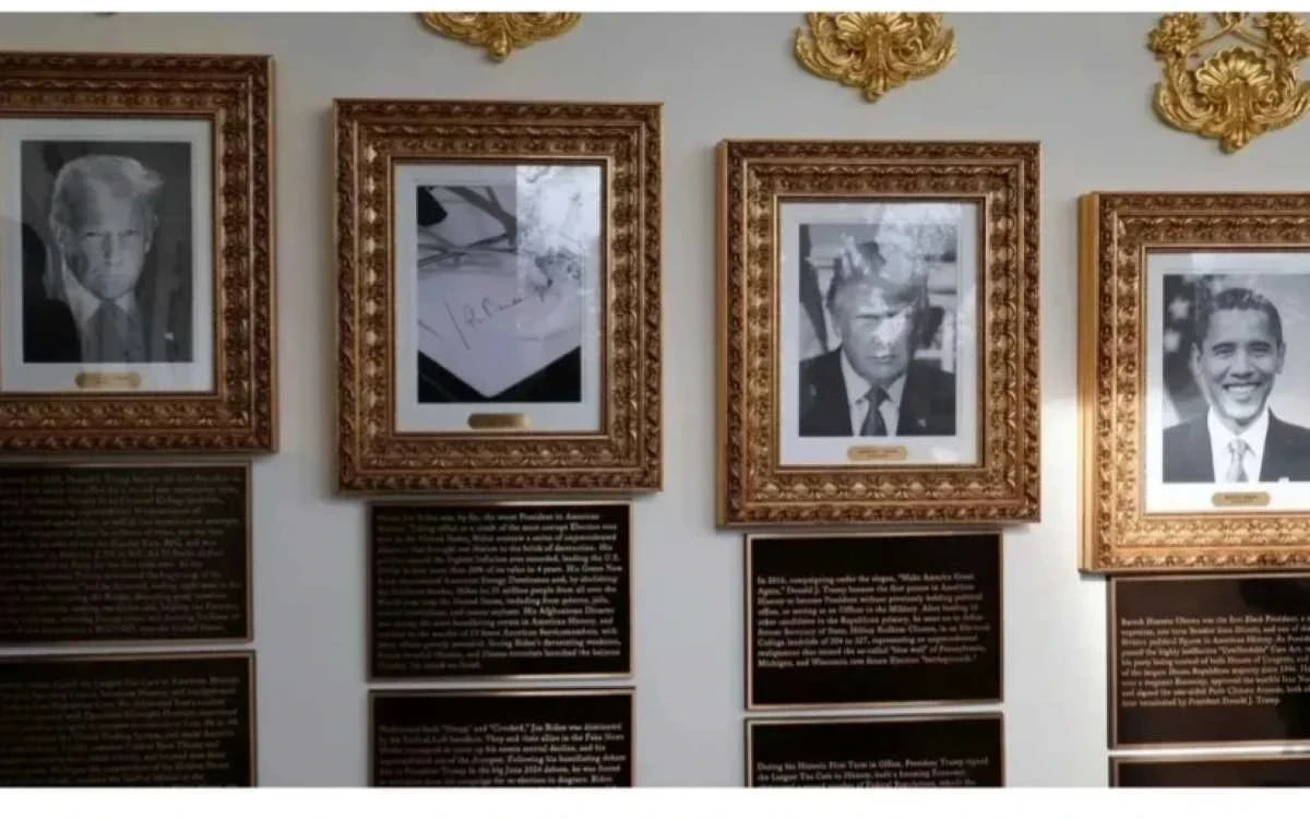 Другие таблички, размещенные под портретами президентов, содержат разнообразные факты о их карьерных путях и основных инициативах. Например, Джордж Буш-младший описан как сильный лидер из-за своей борьбы с международным терроризмом, но подвергнут критике за военные действия в Афганистане и Ираке. Билл Клинтон, в свою очередь, получил признание за успешные реформы в области борьбы с преступностью и социальной защиты, однако не обошлось и без упоминания его скандалов 1990-х годов. На его табличке отдельно указано, что «в 2016 году его жена, Хиллари Клинтон, потерпела поражение на выборах от Дональда Трампа».
