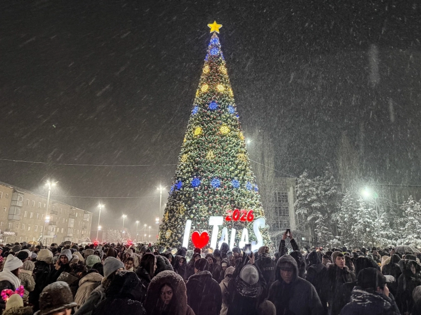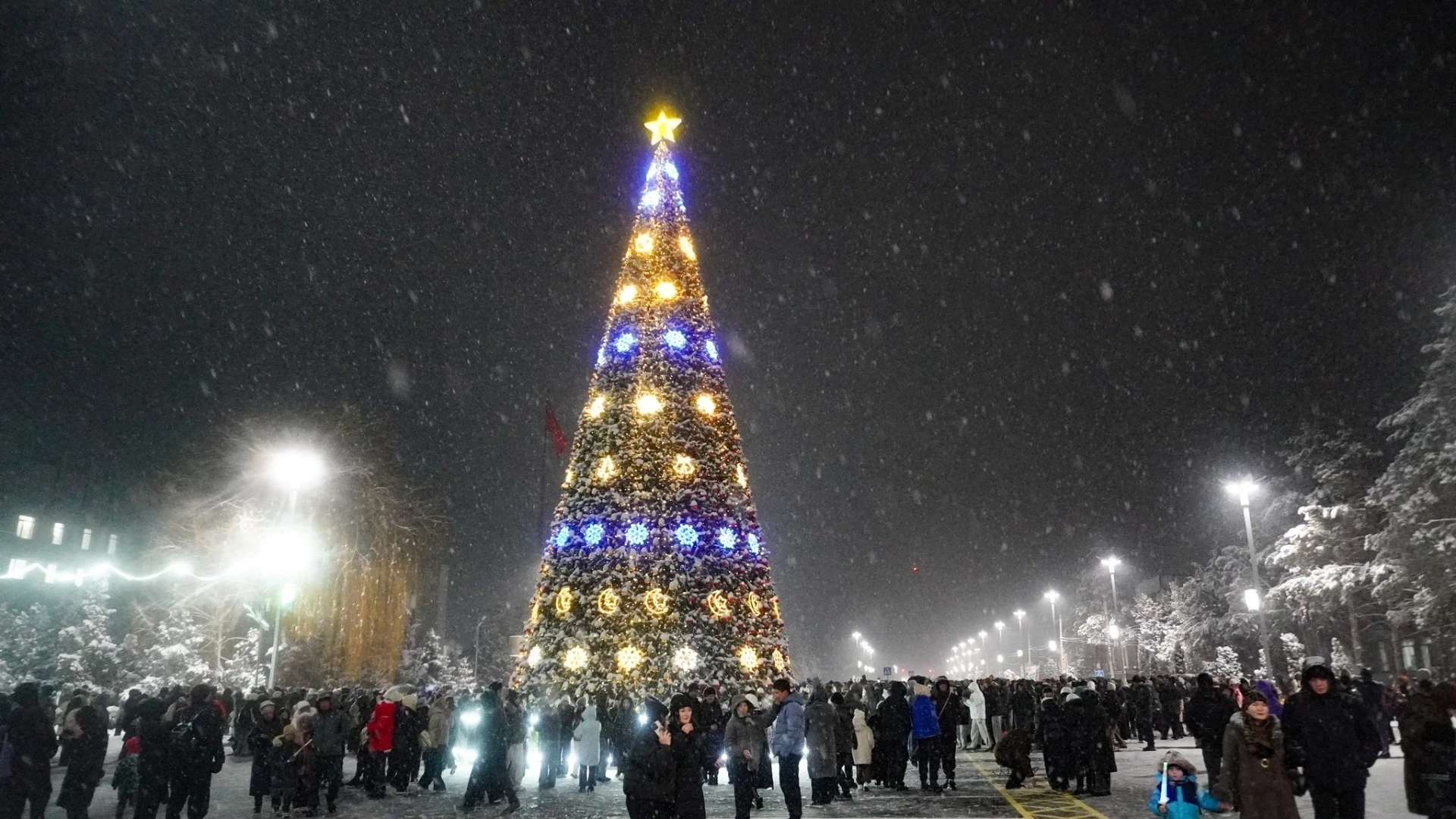 В Таласе зажгли новогоднюю елку на обновленной площади