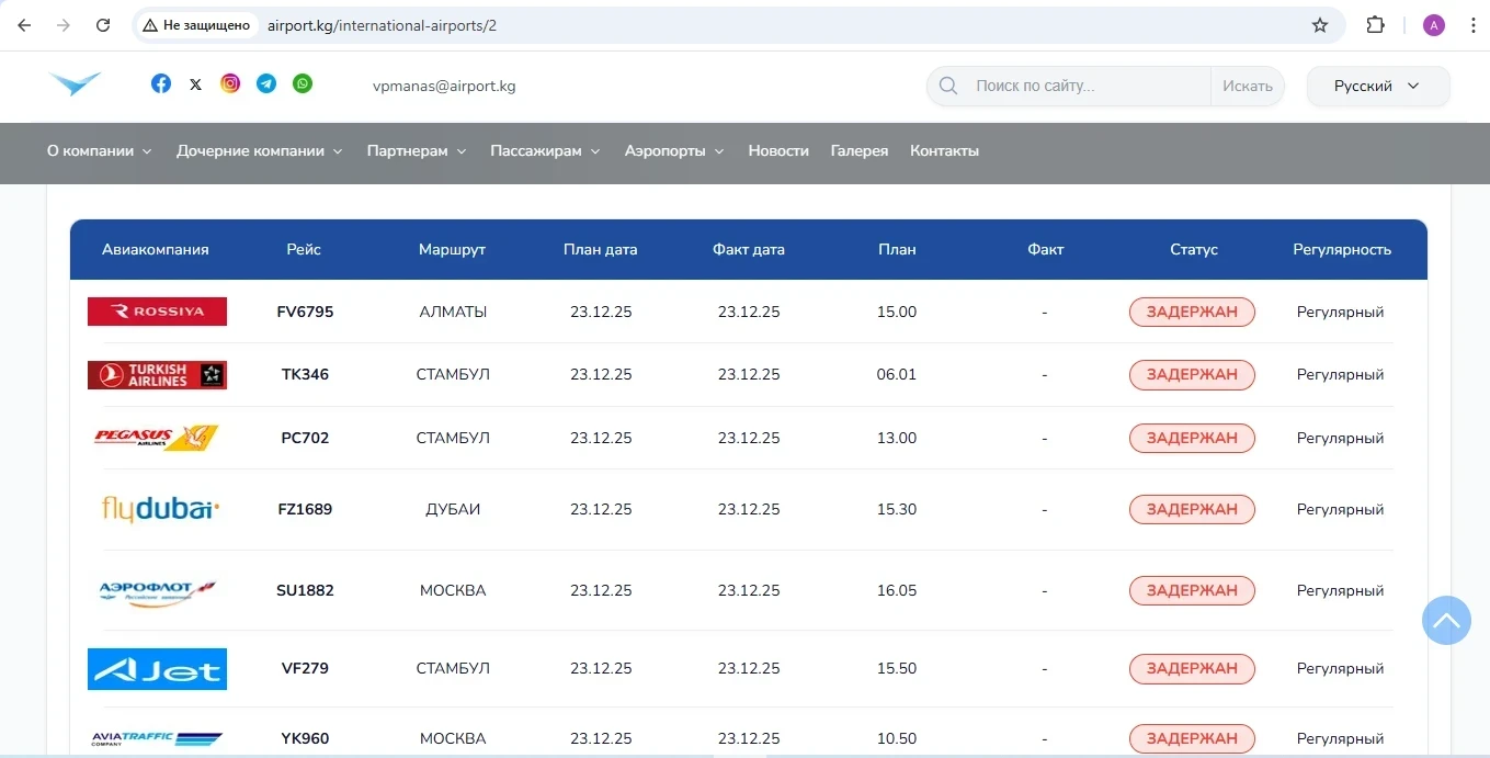 В аэропорту «Манас» снова туман, рейсы задерживают