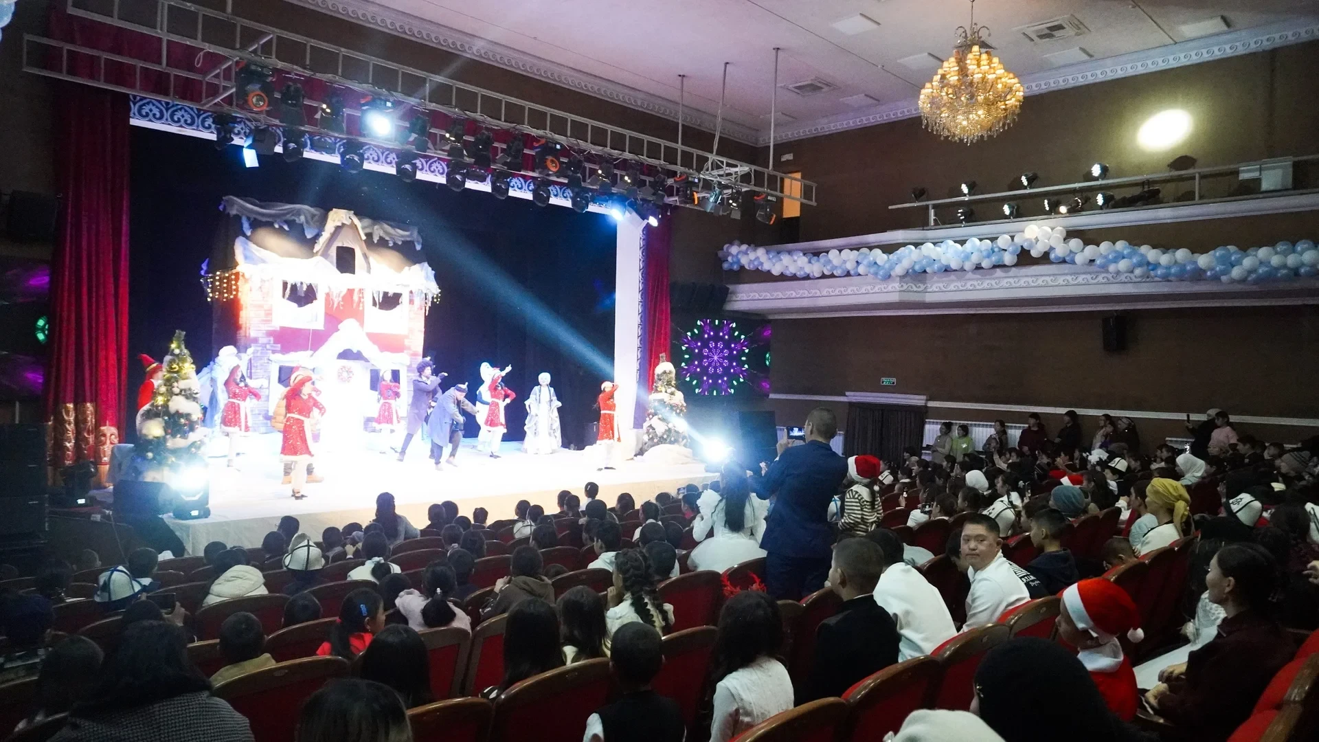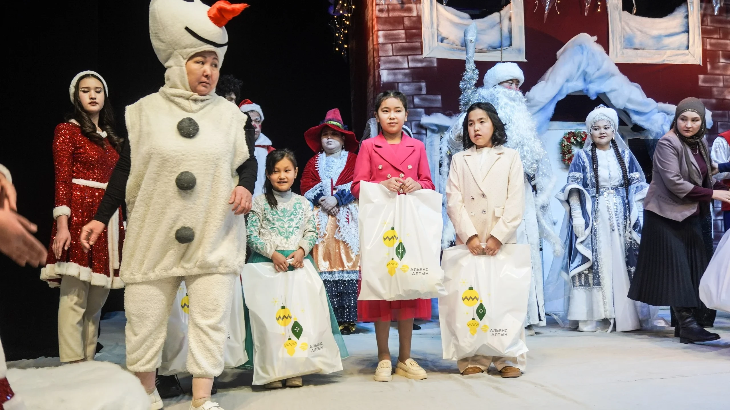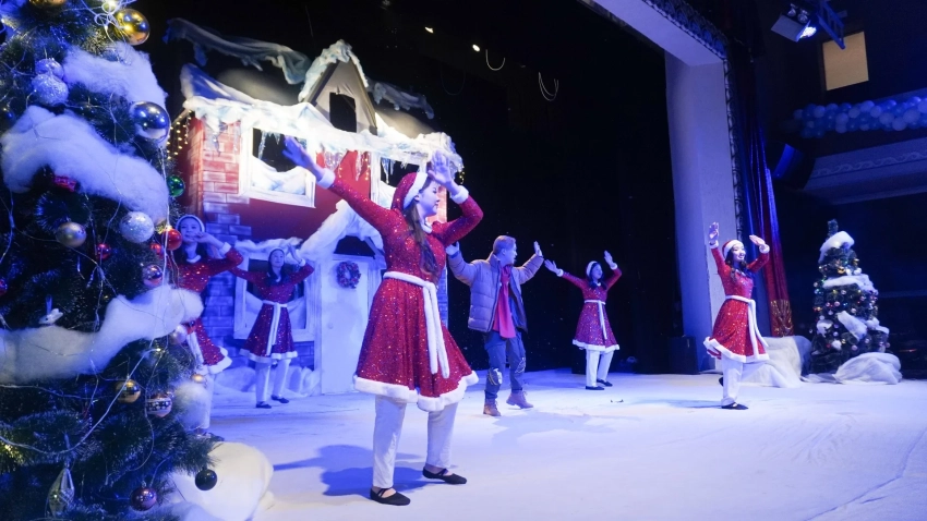 Для создания праздничной атмосферы артисты областного драматического театра имени К. Медетбекова представили театрализованное представление, основанное на сюжете фильма «Один дома». В конце мероприятия всем участникам вручили специально подготовленные подарки.