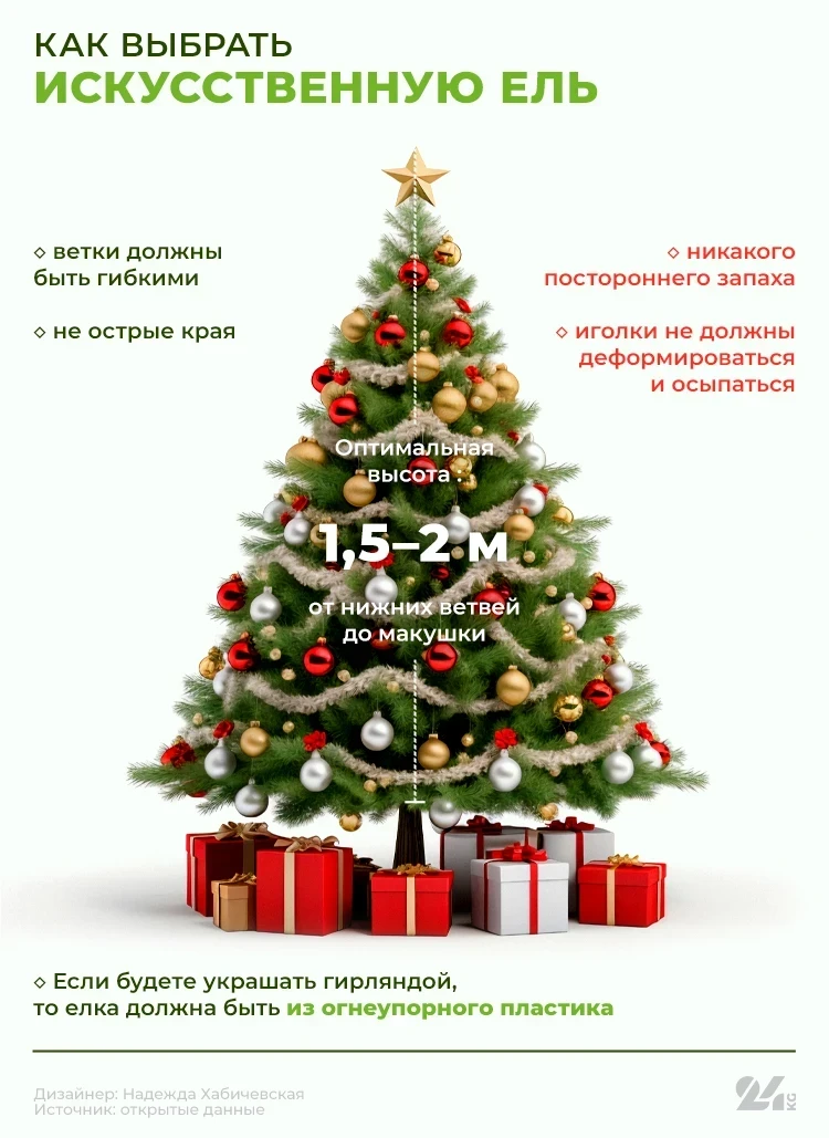 Минимальная стоимость искусственных елок начинается от 4 тысяч сомов, в то время как живые деревья стоят от 5 тысяч сомов. В этом году отмечается рост цен на 20-30% по сравнению с предыдущим годом, и порой разница в цене между живыми и искусственными елями оказывается незначительной.