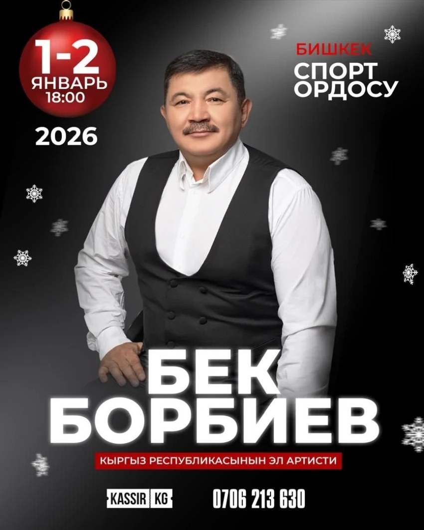 Концерт заслуженного артиста Кыргызской Республики Бека Борбиева станет ярким музыкальным событием, наполненным праздничной атмосферой.