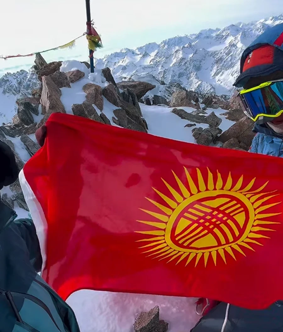 На Пике Учителя заменили порванный флаг Кыргызстана