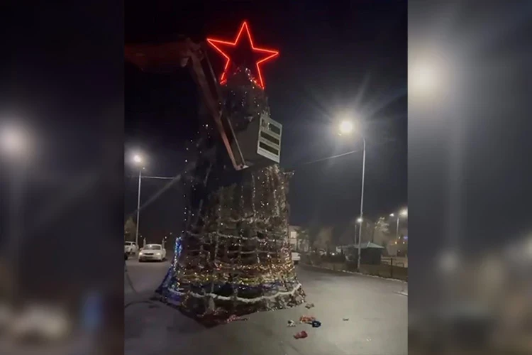 В другом районе города установили еще одну елку, но пользователи социальных сетей раскритиковали ее, назвав скучной и неактуальной.