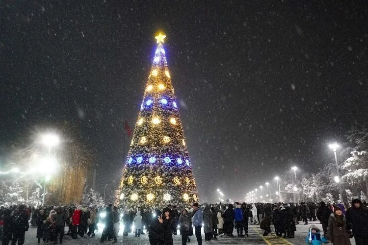 Каракол встретил зиму с размахом: новогодняя елка зажглась на главной площади в снежном окружении. Праздник собрал как местных жителей, так и гостей города.