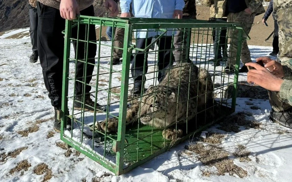 Снежного барса, пойманного в Кемине, выпустили в дикую природу. Фото и видео