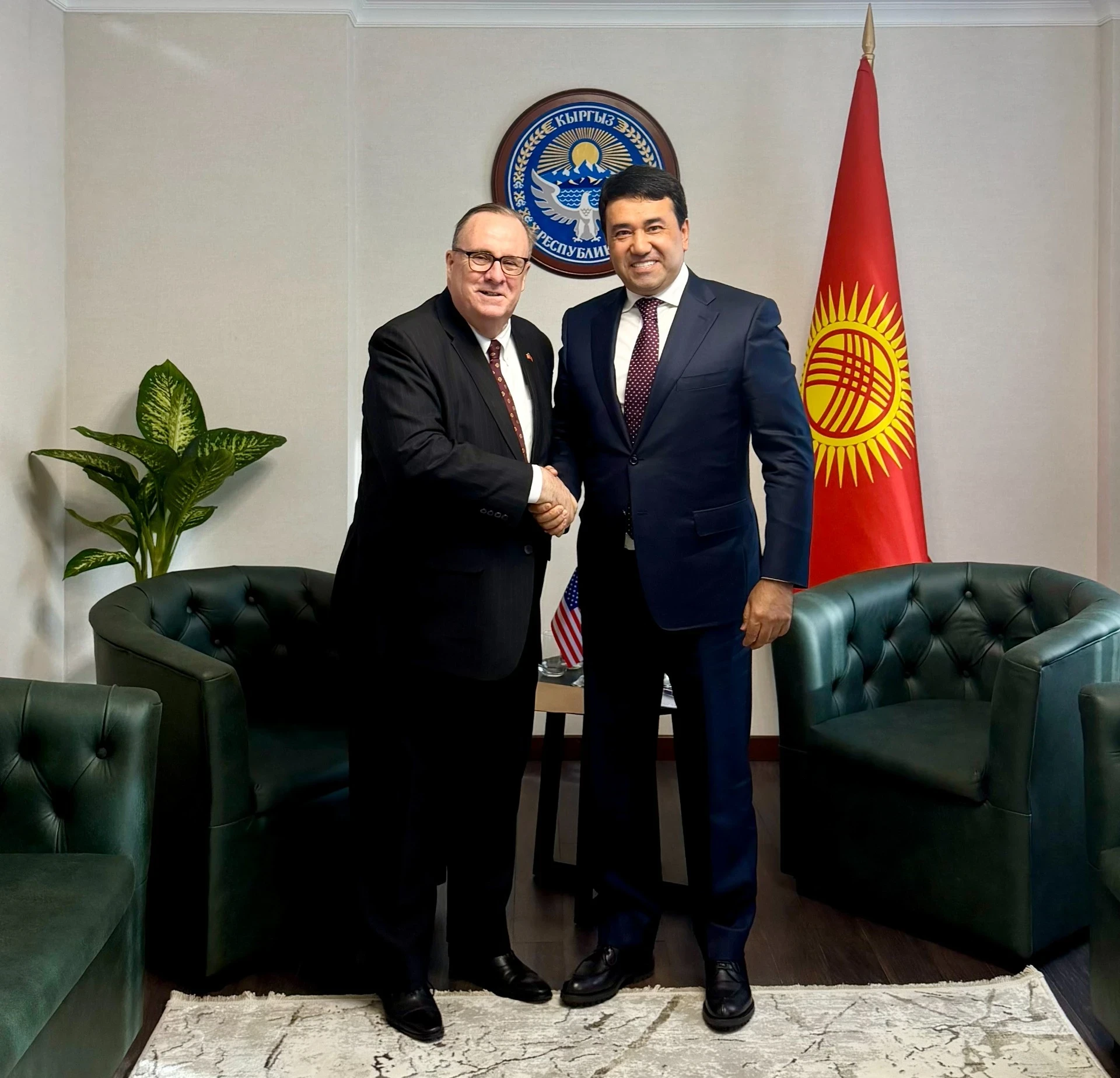 Встреча, организованная по инициативе американской стороны, прошла между Фархатом Иминовым, главой секретариата Национального совета по виртуальным активам и блокчейн-технологиям при президенте Кыргызстана, и Лесли Вигери, Чрезвычайным и Полномочным Послом США в Кыргызстане. Пресс-служба секретариата сообщила об этом событии.