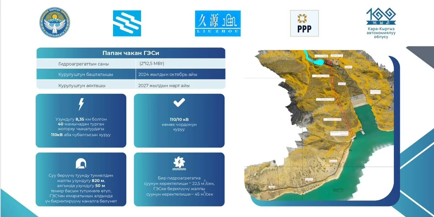 В Кара-Суйском районе Ошской области активно продолжается реализация проекта по строительству малой гидроэлектростанции «Папан», чья мощность составит 27 МВт.