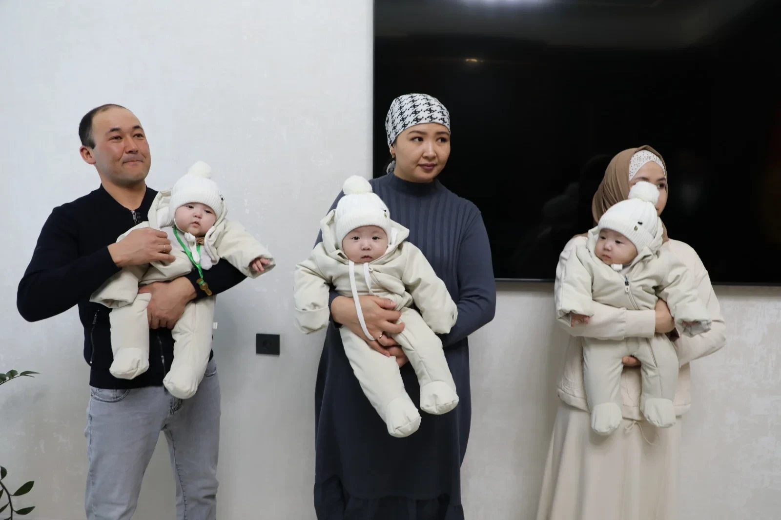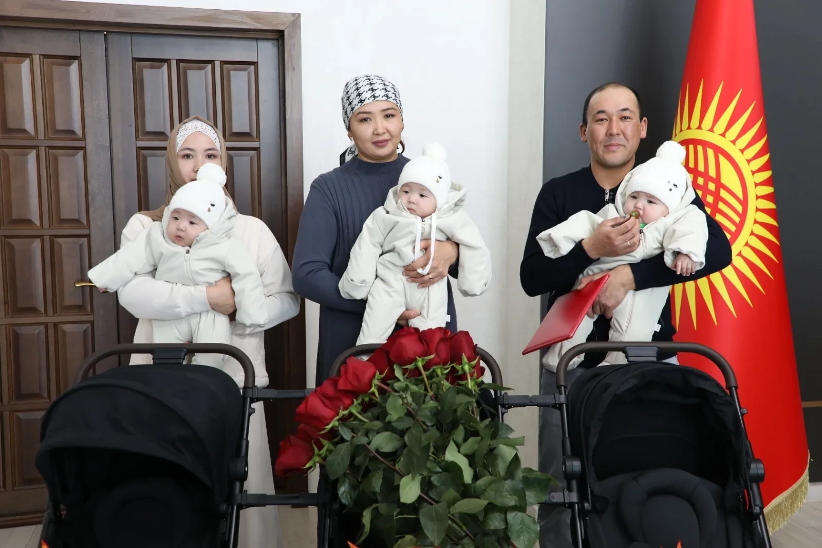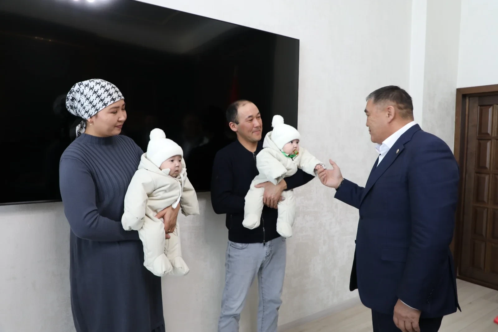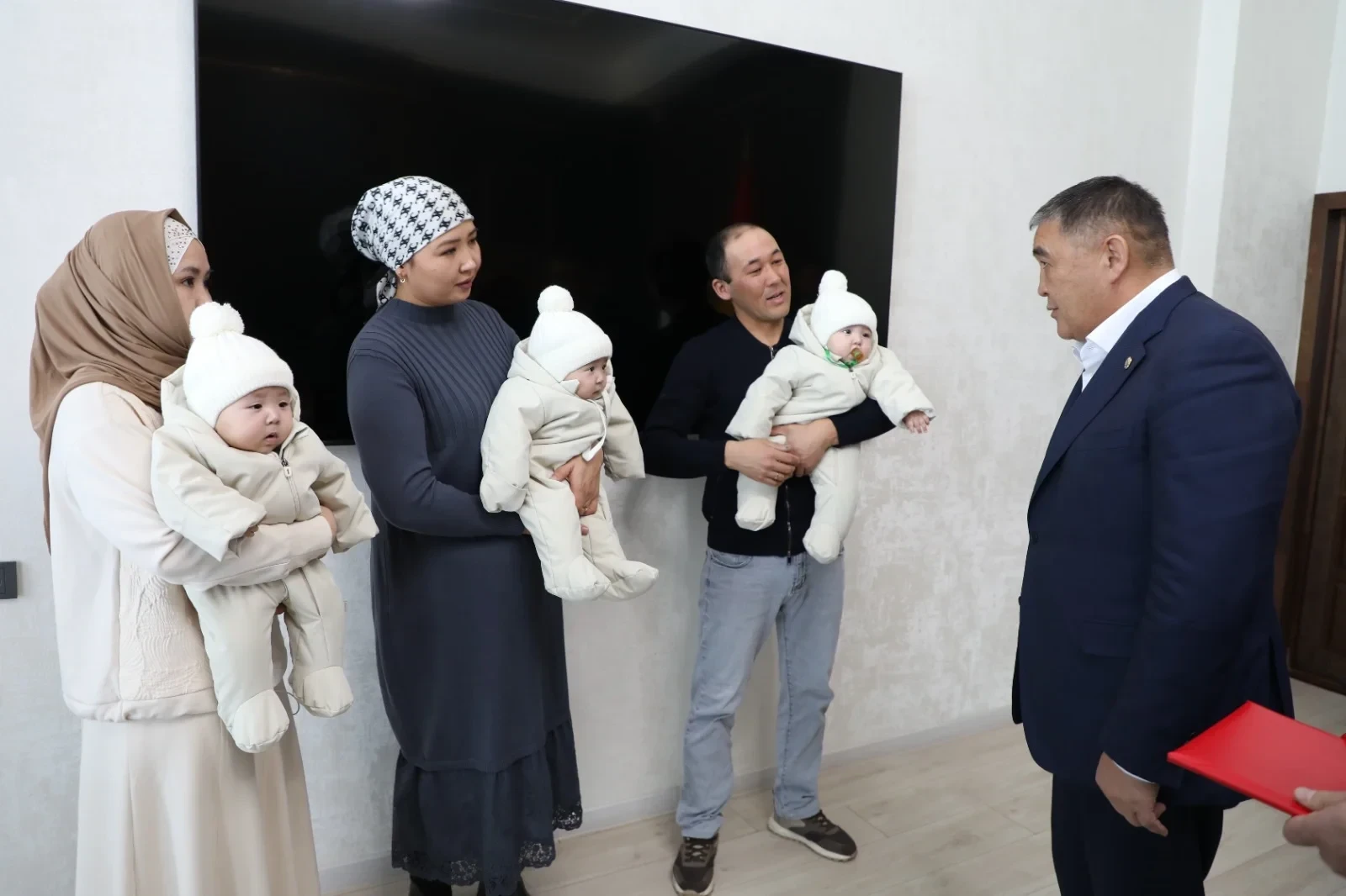 Камчыбек Ташиев, зампредседателя кабинета министров и глава Государственного комитета национальной безопасности Кыргызской Республики, передал ключи от двухкомнатной квартиры семье, у которой родились тройняшки.