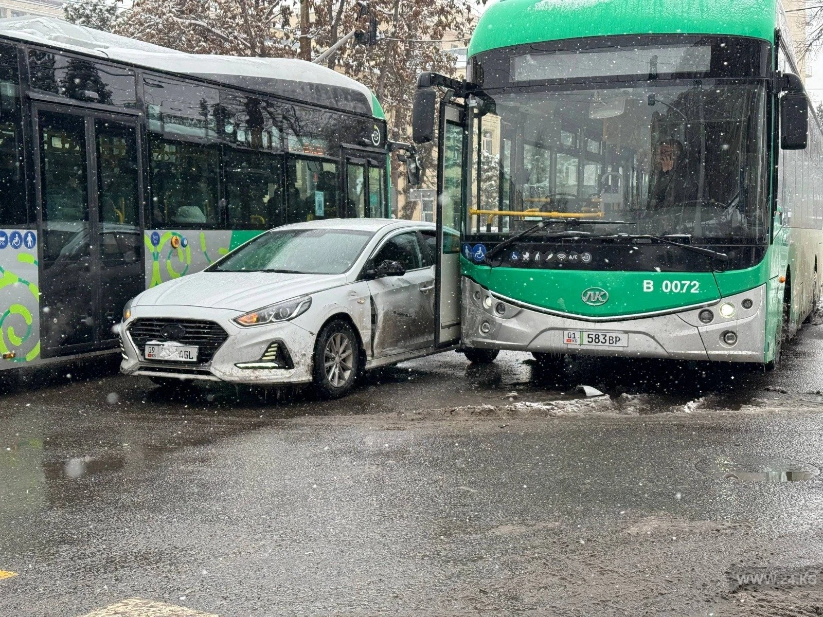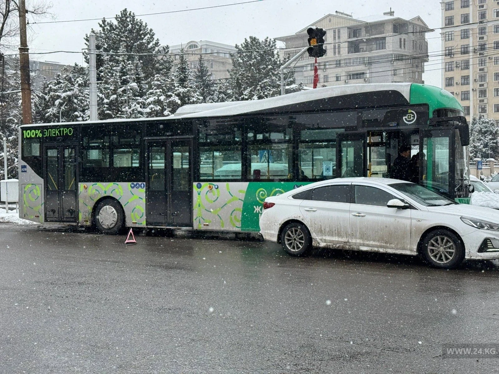 В центре Бишкека электробус столкнулся с легковушкой