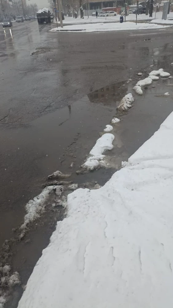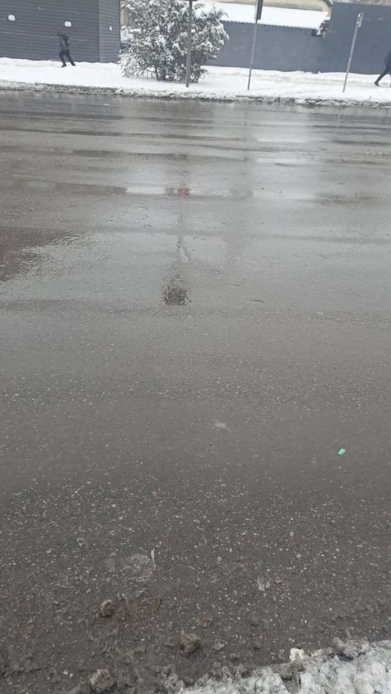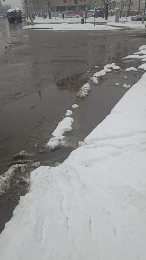 Кроме того, он отметил: "Асфальт с юго-западной стороны на углу моста, соединяющегося с проспектом Чуй, осел. Теперь на месте пешеходной разметки образовалась огромная лужа".
