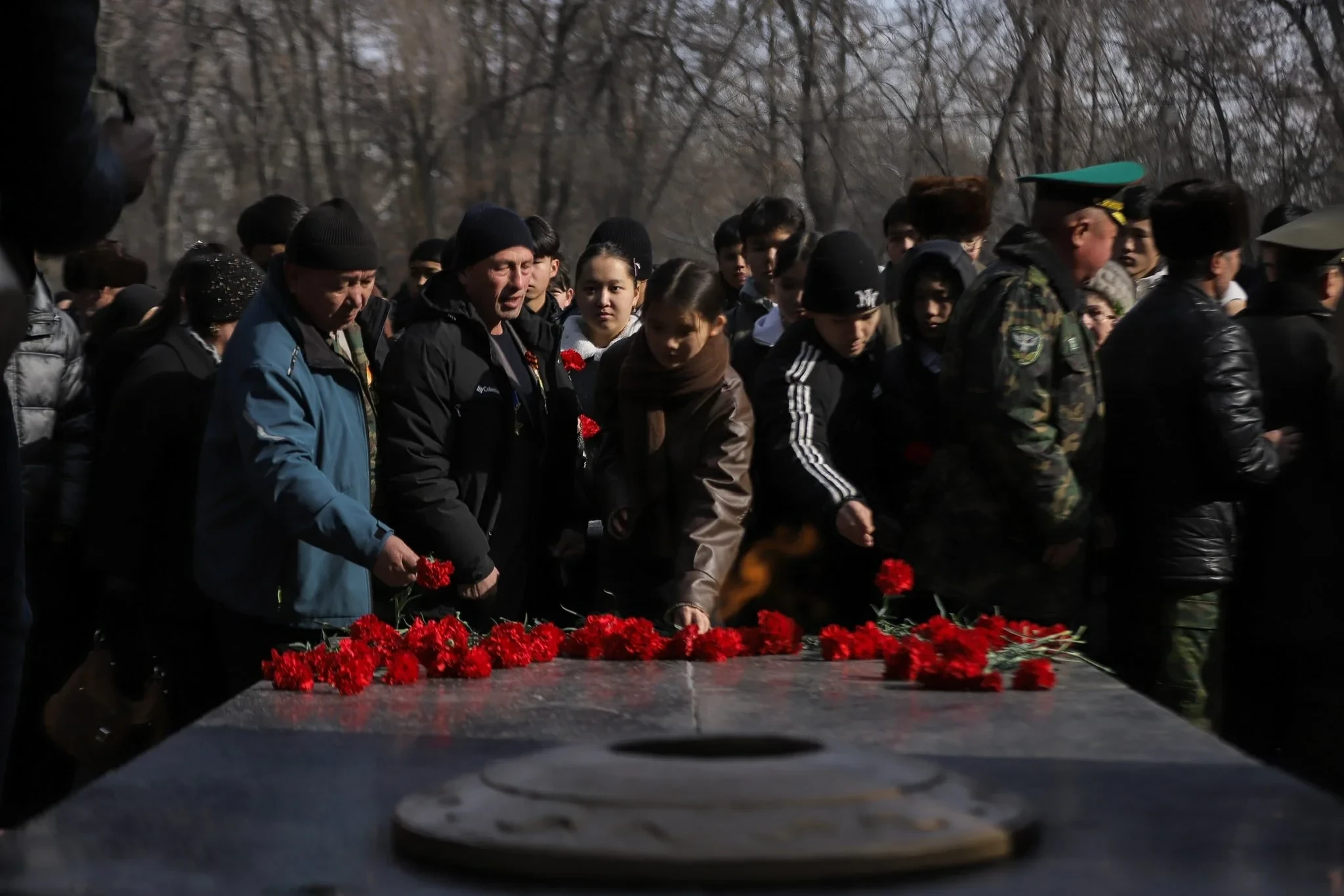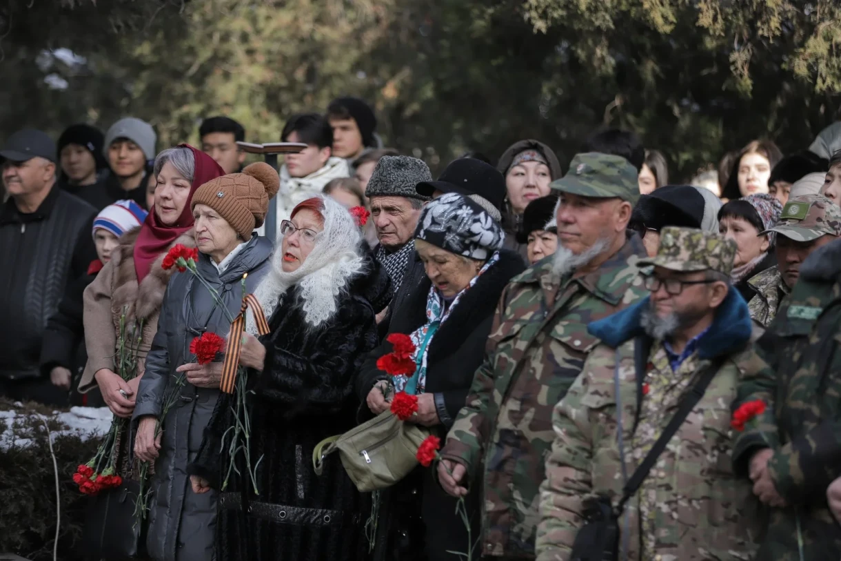 Участники собрались в парке Победы имени Д. Асанова у памятника блокадникам. Руководитель аппарата...