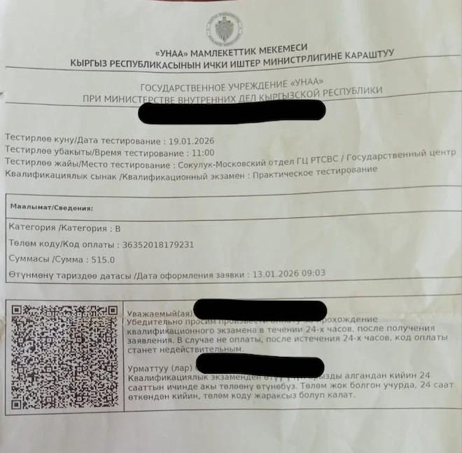 По его словам, "15 декабря мы заплатили 515 сомов за экзамен по вождению, который должен был пройти у сына. Однако экзамен оказался назначен на 9 января — нерабочий день. В итоге, все, у кого экзамен выпал на этот день, после изменения сроков были вынуждены платить еще раз. Мы не получили объяснений о том, куда ушли наши деньги, и как можно их вернуть".