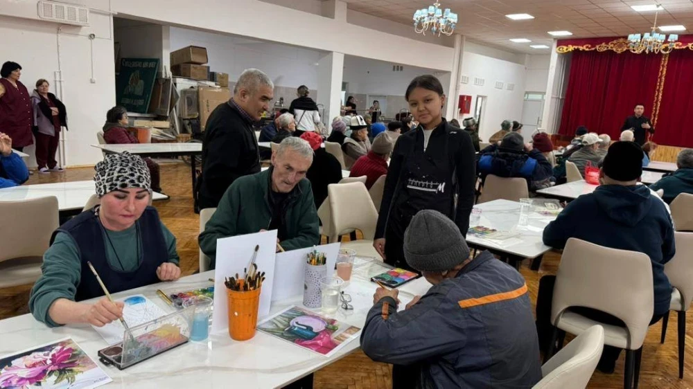 Для любителей живописи в Нижне-Серафимовском доме-интернате организовали мастер-класс от народного художника КР Таалайбека Усубалиева, представлявшего "Галерею М" под руководством Мээрим Акматкуловой.