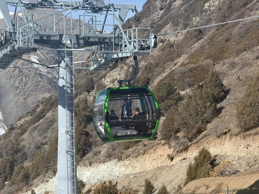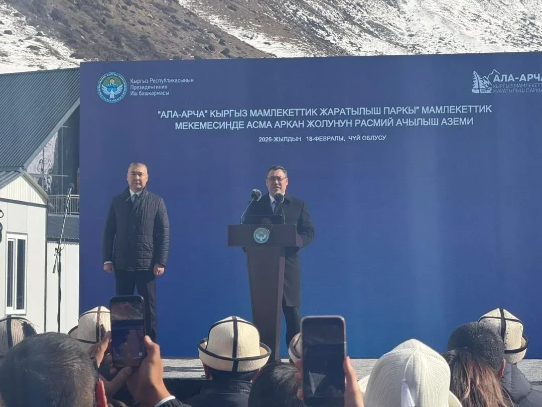 Открытие канатной дороги в государственном природном парке «Ала-Арча» состоялось сегодня с участием президента Садыра Жапарова. Протяженность новой канатной дороги составляет 1 километр и включает 16 кабин, каждая из которых вмещает по 10 человек. В числе кабин — две VIP-класса, рассчитанные на 4 пассажира.
