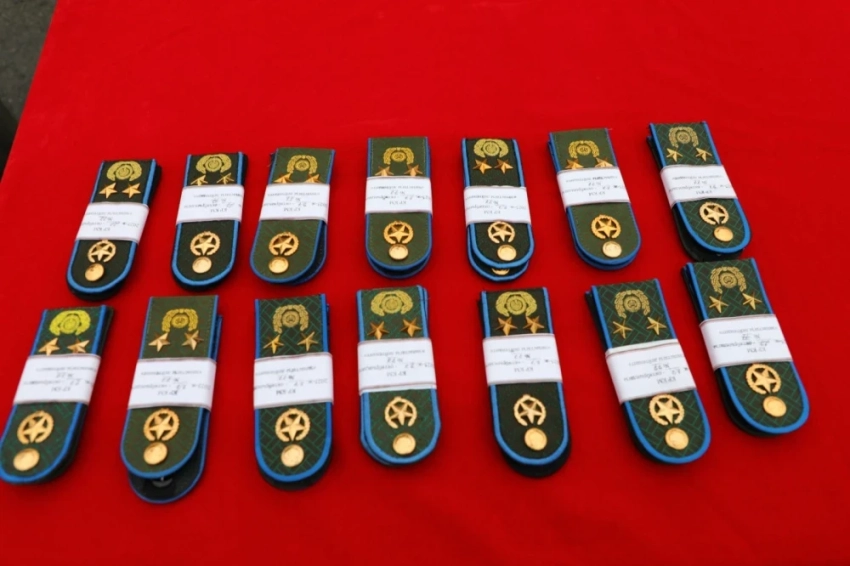 Во время этой церемонии военнослужащим, призванным в прошлом году, были вручены погоны и присвоены первые офицерские звания "лейтенант запаса".