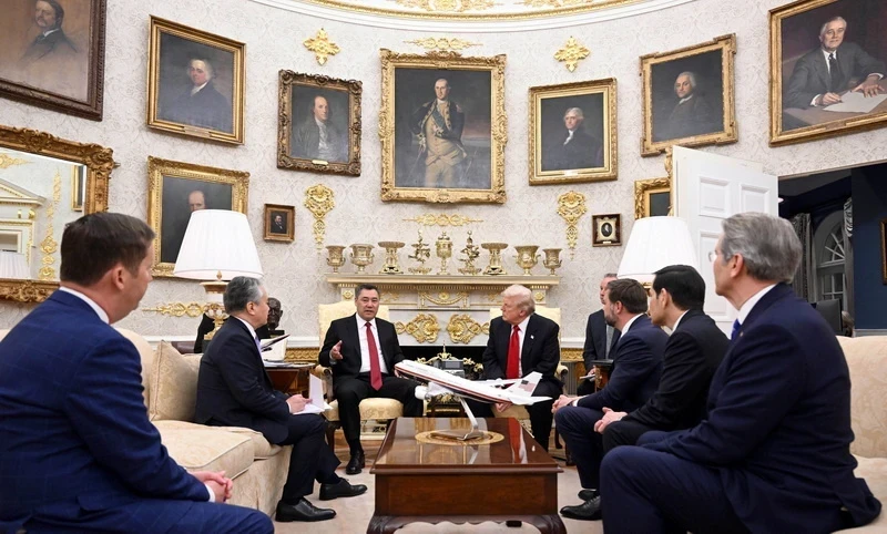 6 ноября, в ходе своего рабочего визита в США, президент Кыргызстана Садыр Жапаров встретился с Дональдом Трампом в Вашингтоне. Информация об этой встрече была представлена отделом информационной политики аппарата президента.
