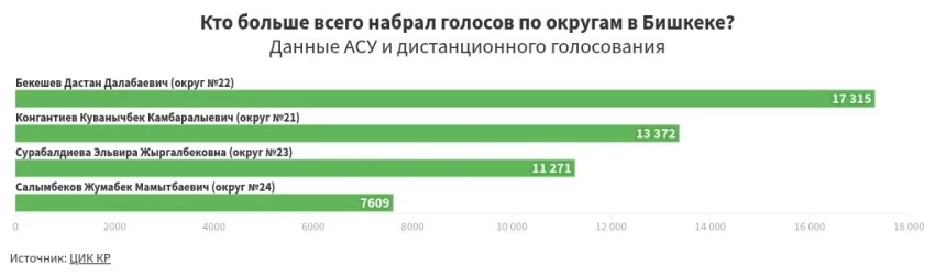 Больше всего избирателей проголосовали за кандидата Шаирбека Ташиева. Рейтинг лидеров