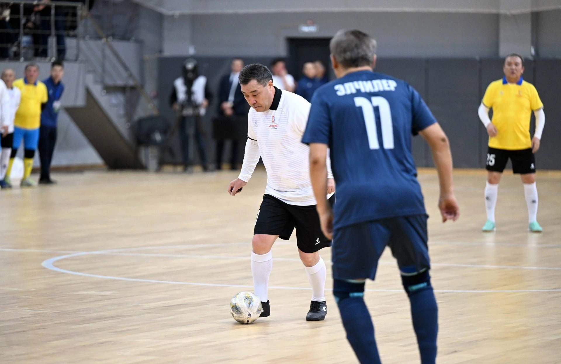 Садыр Жапаров состоит в команде, представляющей администрацию президента, в которую входят также министры и руководители государственных учреждений, принимая участие в футбольном турнире «Мурас».